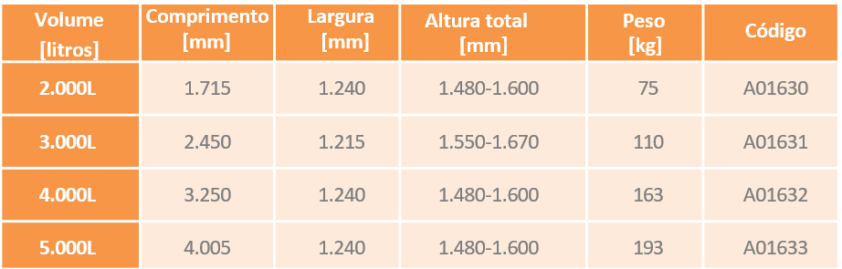 Fabricados por moldagem rotacional em polietileno de alta densidade (HDPE), estes reservatórios apresentam excelente comportamento mecânico e químico, sendo totalmente recicláveis e amigos do ambiente. O seu desenvolvimento em CAD assegura estabilidade máxima e otimização do espaço, tornando-os ideais para instalação subterrânea.