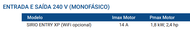 - Saída: 240 V.