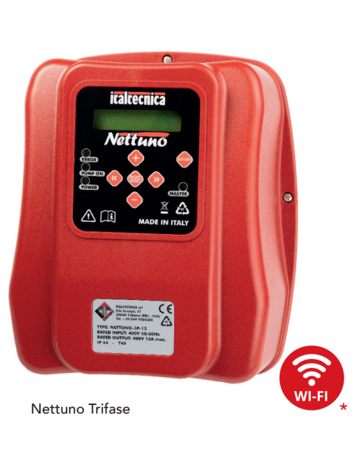 Os NETTUNO são dispositivos eletrónicos que controlam o arranque e a paragem de uma eletrobomba. Baseados na tecnologia “inverter”, são capazes de modular a frequência (Hz) da corrente que chega ao motor, variando assim a sua rotação, de acordo com o consumo de água que ocorre na instalação.