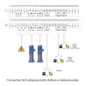 Proteção do circuito de comando através de disjuntor. Proteção do circuito de potência contra curto-circuitos através de disjuntor. Proteção do circuito de potência contra sobrecargas através de relé térmico. Indicação de presença de fase no circuito de comando (sinalizador amarelo). Indicação individual de motor ligado (sinalizadores verdes). Indicação individual de disparo térmico (sinalizadores vermelhos). 6 Bucins, para passagem dos cabos de ligação.