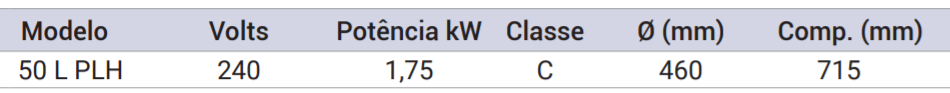 - Caldeira em chapa de aço com revestimento anticorrosivo.