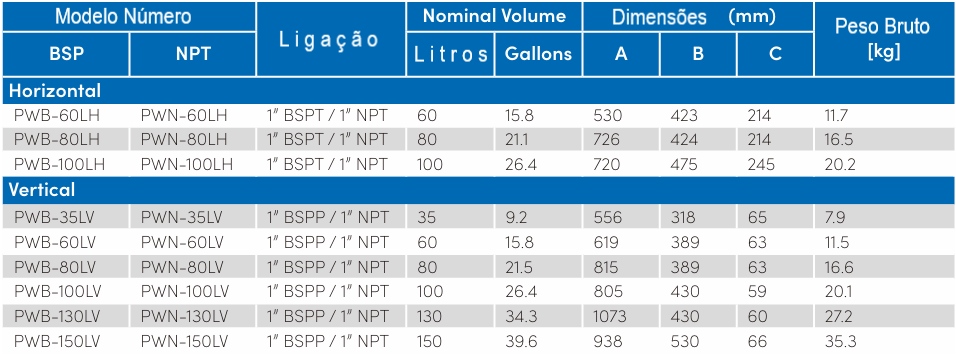 Pressão máxima de trabalho: 10 bar / 150 psi.