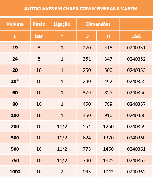 As autoclaves da marca Varem são concebidas para integrar sistemas de abastecimento de água potável, sendo ideais para instalações em furos, poços, depósitos e reservatórios. Funcionam como parte essencial do grupo de pressão, garantindo um fornecimento de água constante e estável em habitações, sistemas de rega ou outras aplicações técnicas.