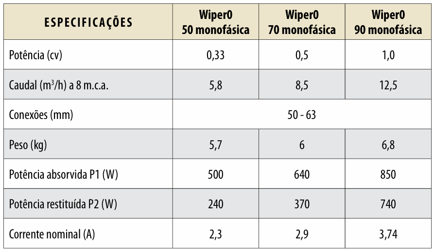 ✅ Corpo de aspiração e impulsão, turbina aberta e suporte motor-bomba em tecno polímero.