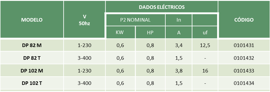 As bombas DP são bombas Auto-ferrantes para aspiração até 27 metros, com a utilização do Hidrojector que deve ser introduzido em poços de 4″ ou de diâmetro maior. São utilizadas principalmente para: Abastecimento doméstico; Quintas e agricultura de pequenas dimensões.