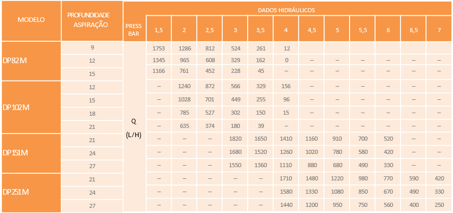 As bombas DAB DP são centrífugas auto-ferrantes projetadas para aspiração profunda até 27 metros, utilizando o Hidrojetor, que deve ser introduzido em poços de 4″ ou de diâmetro superior.