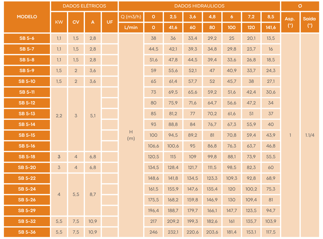 As Bombas SB 5 destacam-se pela robustez, desempenho e versatilidade, sendo a escolha ideal para sistemas de pressurização, instalações industriais, edifícios de grande porte e aplicações que exijam alta pressão e fiabilidade contínua.