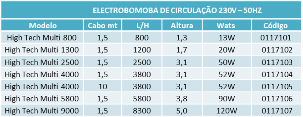 Do modelo 800L / h ao poderoso 9000L / h, a linha Multi inclui seis bombas de recirculação para cada tipo de lago, até 10.000 litros de capacidade.