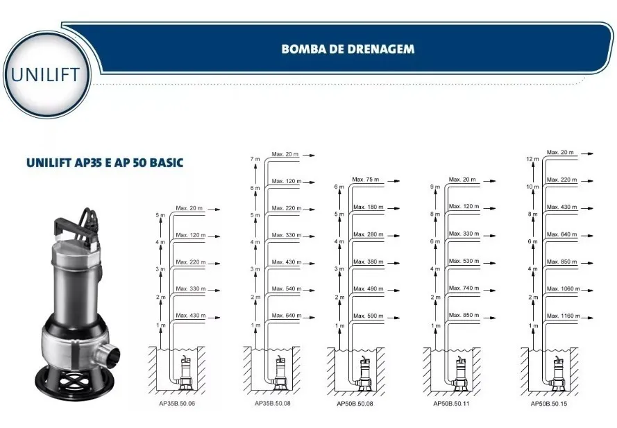 A UNILIFT AP50B é uma bomba submersível projetada para bombear efluentes. A bomba é adequada para instalação em acoplamento automático, permitindo fácil acesso à bomba para manutenção e outros fins.
