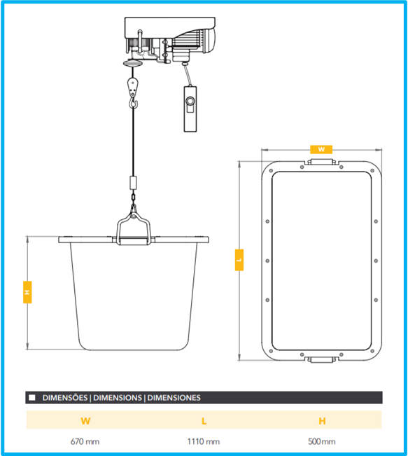 A Caixa de elevada resistência e de fácil manuseio para transporte de argamassa, foi pensada para ser empilhável e assim permitindo um melhor aproveitamento de espaço e armazenamento a nível de transporte. Contêm alças de engate para a sua elevação. Alta qualidade, elevada resistência ao impacto e às intempéries, devido ao seu processo de fabrico por Roto moldagem.