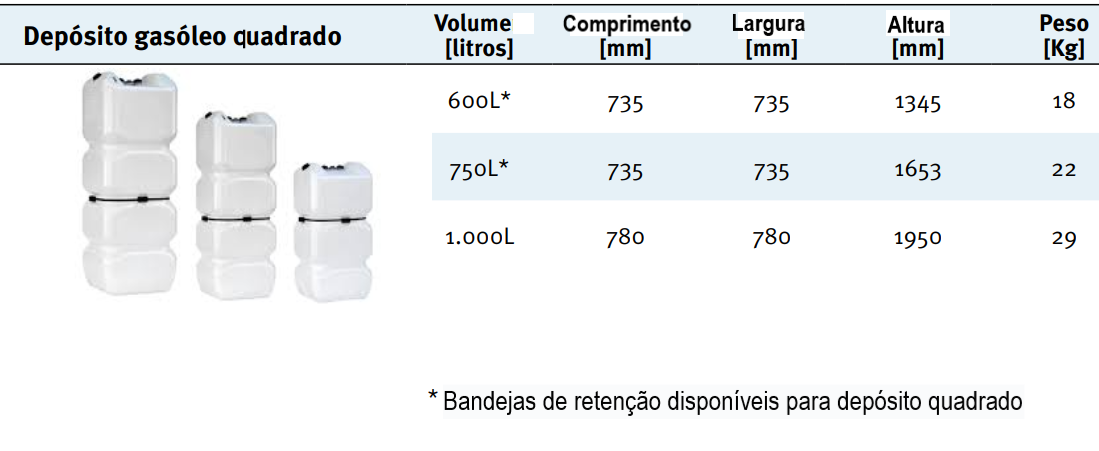 DEPÓSITOS P/ GASÓLEO QUADRADOS