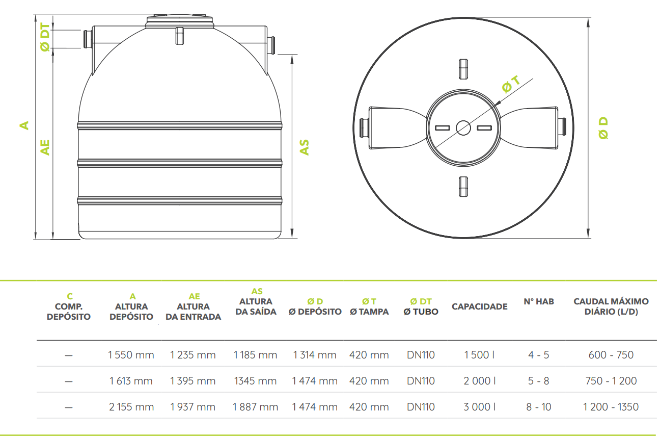 · As Fossas Sépticas Aguatec contêm difusor de entrada do efluente que evita turbulências e completam-se com um pré-filtro com cassete amovível para limpeza.
