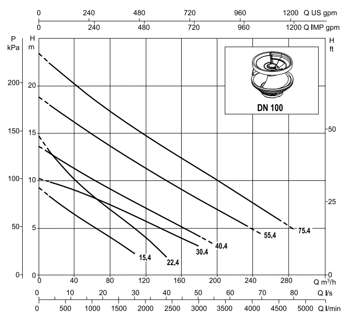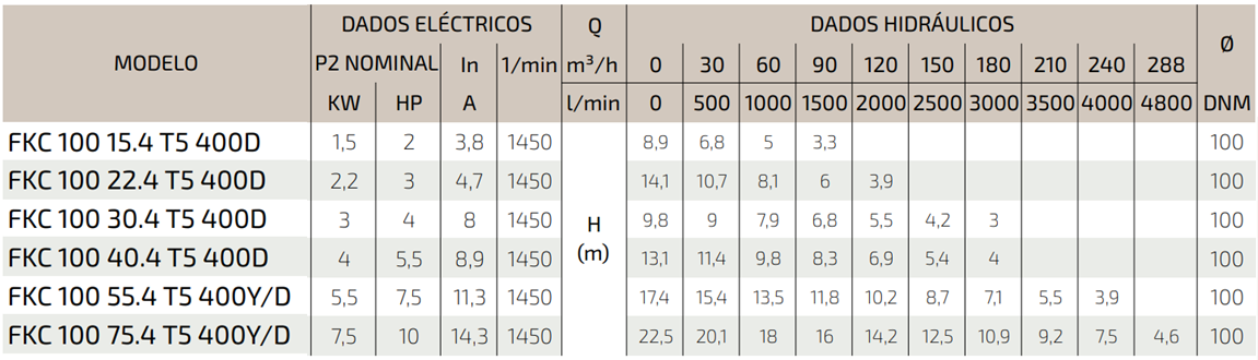 De 30 a 324 m3/h com Hm até 22,5 mca.