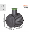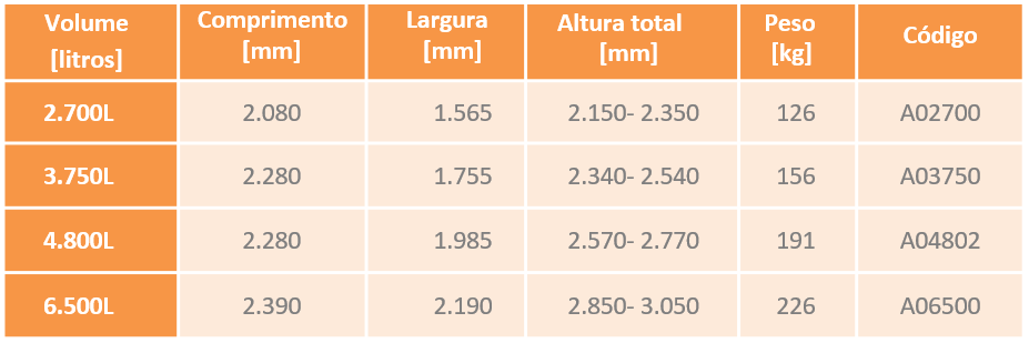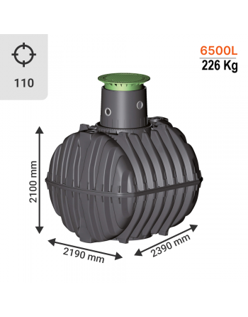 Inclui: Até 6.500L: Depósito, cúpula Maxi com ligações DN110, mini tampa telescópica e kit de juntas.