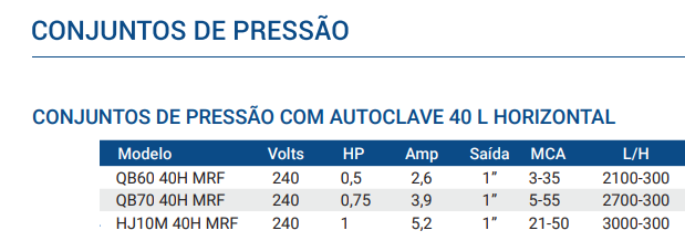 A pressão de ar dos autoclaves deve ser 10% inferior em relação à pressão de arranque da electrobomba. Exemplo: Se a pressão de arranque for de 2 bar a pressão de ar será de 1,8 bar.