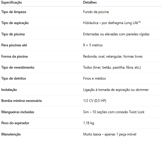 💧 Ideal para piscinas pequenas e médias de até 9 × 5 m