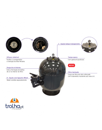 ✔️ Difusor rebatível – facilita o carregamento e manutenção do meio filtrante