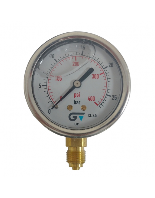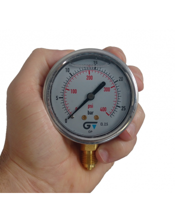 MANÓMETRO VERTICAL 90 PSI Ø 63 MM 0 - 25 BAR 1/4" BSP COM GLICERINA