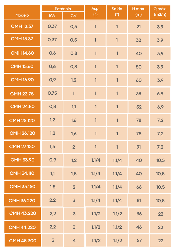 A eletrobomba centrífuga multicelular horizontal CMH foi projetada para oferecer excelente desempenho com baixo ruído, sendo uma solução versátil e robusta para aplicações domésticas e industriais.