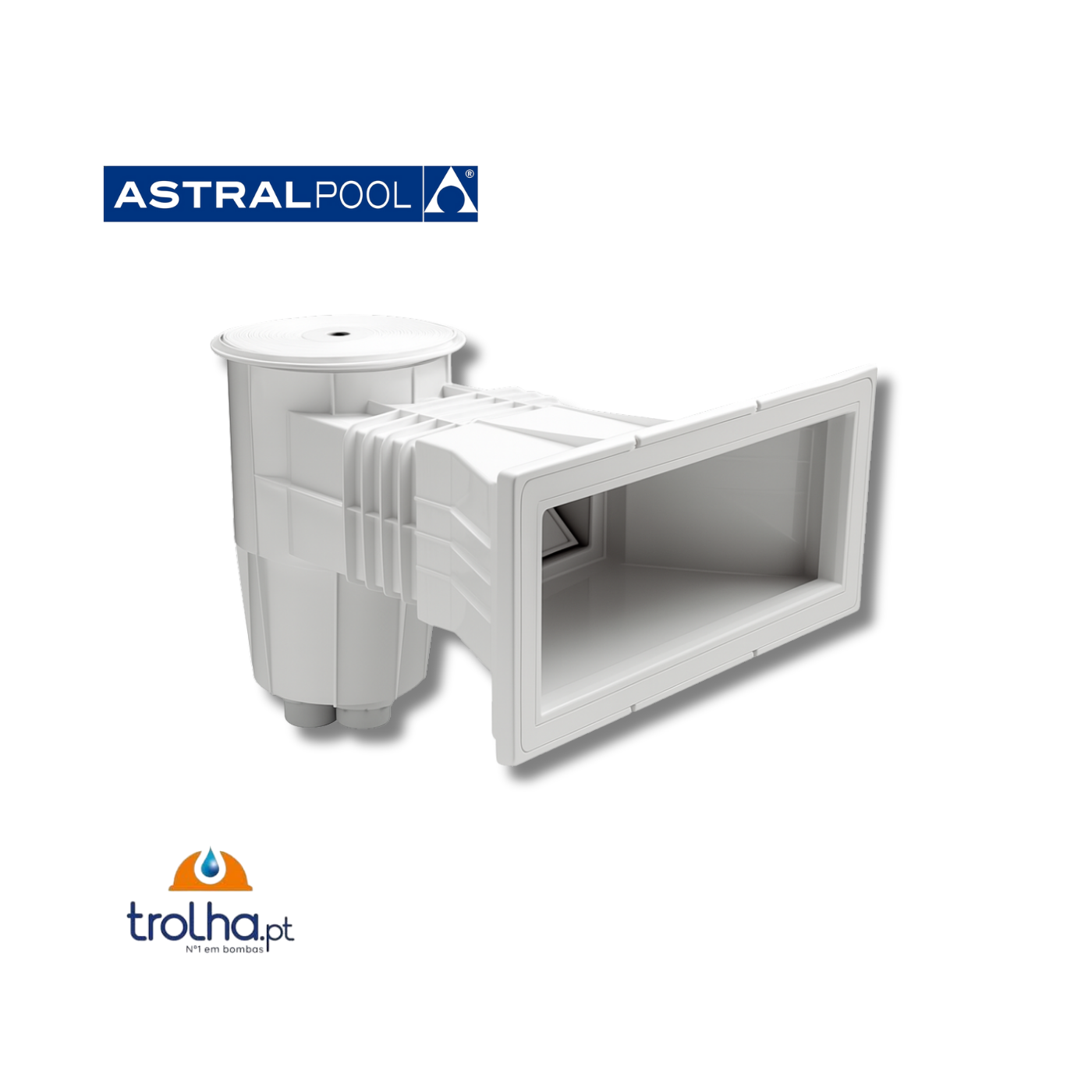 O Skimmer de 15 litros com boca ampliada é especialmente desenvolvido para piscinas de betão, oferecendo uma maior área de sucção na superfície da água, ideal para a remoção eficaz de folhas, insetos e outros resíduos flutuantes. Fabricado em ABS branco de alta resistência, incorpora tratamento UV nas partes expostas, garantindo maior durabilidade mesmo sob sol intenso.