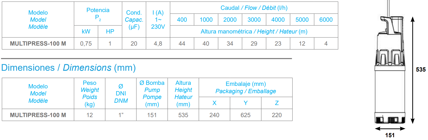 ❇️ Electrobomba submersível multiestágio com dispositivo de controle de pressão integrado para partida e parada automática.