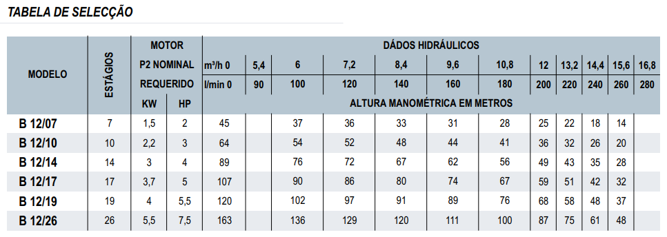 Os hidráulicos HIDRAL da série B12 são projetados para integrar bombas submersíveis centrífugas de 4", garantindo fiabilidade, robustez e desempenho ideal em ambientes de captação profunda e uso contínuo.