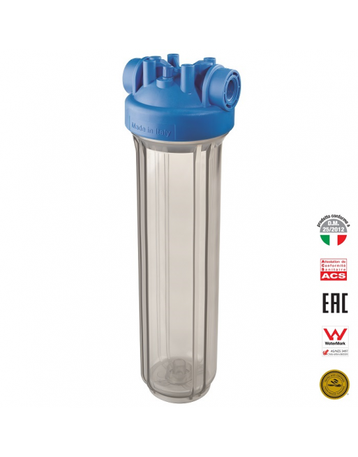 Os Filtros de água Big Mono são feitos de polipropileno reforçado e se encaixam em cartuchos padrão de 4,5” de diâmetro e comprimentos de 10” e 20”. Graças às ligações Entrada/Saída (IN/OUT) de 1” e de 1”1/2 com rosca plástica GAS cilíndrica (BSP) ou tipo cônico (NPT), o Filtro BIG adapta-se a qualquer necessidade de filtração de grande capacidade para uso doméstico e industrial. São fabricados com os melhores materiais e na constante busca de tecnologias inovadoras com sistema de monitorização contínua para garantir a qualidade dos produtos.